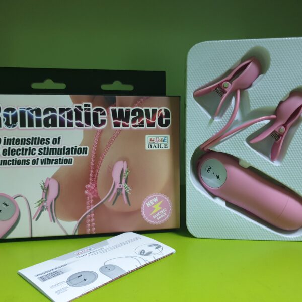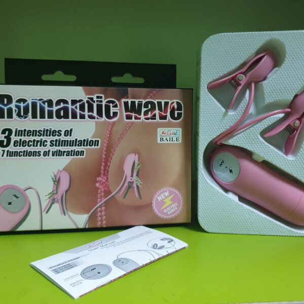 เครื่องหนีบนมเสียว Romantic Wave มาพร้อมฟังก์ชันปล่อยไฟฟ้าช๊อต 3 รูปแบบที่จะทำให้รู้สึกเสียวเป็นอย่างยิ่ง และยังสามารถสั่นได้ถึง 7 ฟังก์ชั่น